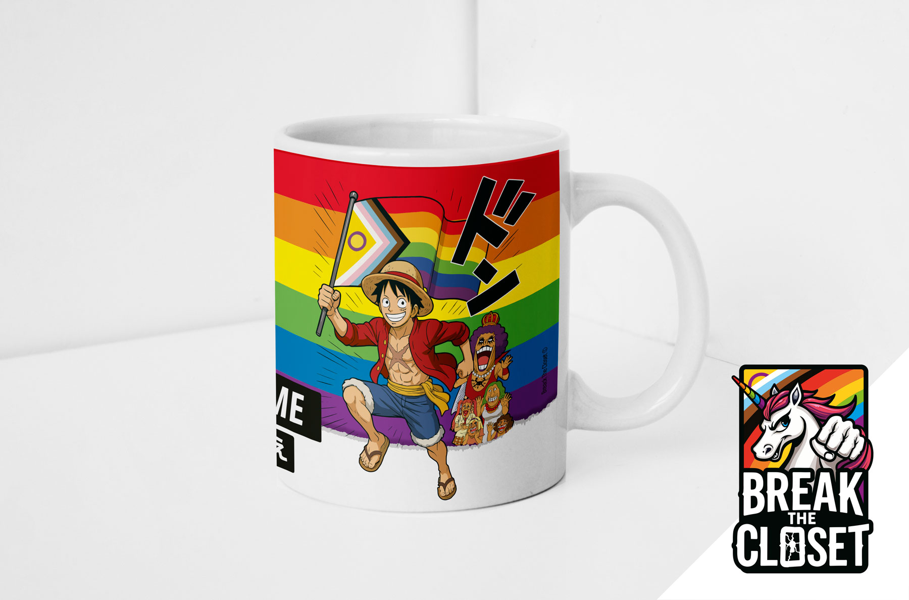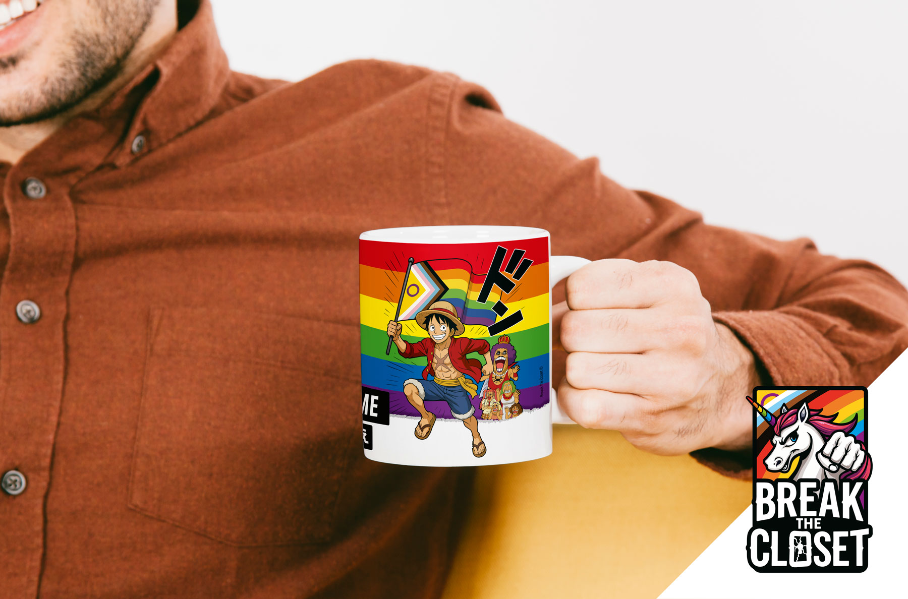 Un visuel coloré, une touche manga et une bonne dose de fierté pour accompagner tes cafés, thés ou chocolats chauds. Cadeau idéal pour les fans de One Piece et de culture LGBTQIA+.