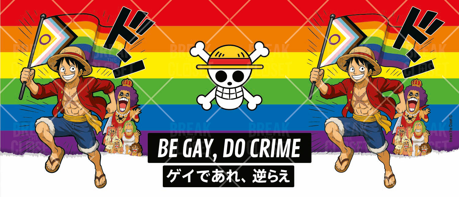 Ce mug One Piece unique met à l’honneur Luffy, fier de brandir le drapeau arc-en-ciel aux côtés d’Ivankov et des révolutionnaires. Avec l’inscription culte Be Gay, Do Crime, c’est une tasse fun et engagée pour affirmer ton identité avec humour.